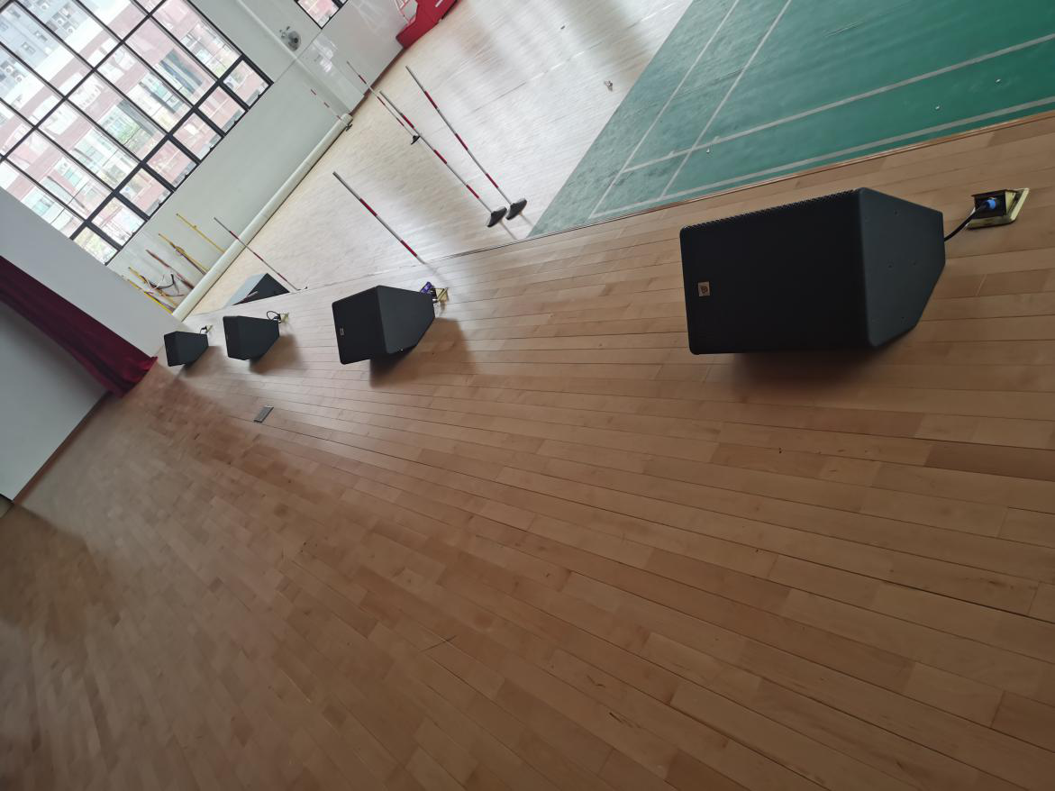 該擴聲系統(tǒng)設(shè)計功能明確,以BAIANGDE TZ系列線陣為主擴聲音箱,舞臺上方左右各4只TZ-210,搭配2只TZ-218S超低頻音箱使用,超低頻音箱擺放在舞臺前方左右兩側(cè),考慮到體育館深度的問題,為了保證聲音的均勻度,后場采用6只MT-12作為補聲音箱,每邊三只。整個擴聲系統(tǒng)為觀眾帶來一個音質(zhì)真實、中高低頻層次豐富,動態(tài)飽滿的擴聲效果。 由于學(xué)校經(jīng)常有演出,考慮到表演人員能及時獲取現(xiàn)場演出效果而做出更好的調(diào)整和發(fā)揮,舞臺上則采用了4只MC-12作為返聽音箱,整體擴聲充分考慮各區(qū)音質(zhì)效果,為觀眾建立了一個音質(zhì)真實清晰,動態(tài)充沛有力的聽覺環(huán)境。