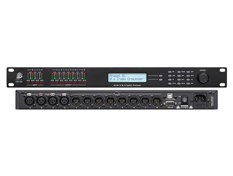 產(chǎn)品功能 高精度的DSP處理器,48bit的內(nèi)部數(shù)據(jù)處理,具有極高的動態(tài)范圍及優(yōu)秀的音質(zhì); 預設多分頻模式:2X2+2分頻,2X3分頻,4+2分頻,5+1分頻和6分頻模式; 同時每個輸出通道的信號源(Sour...